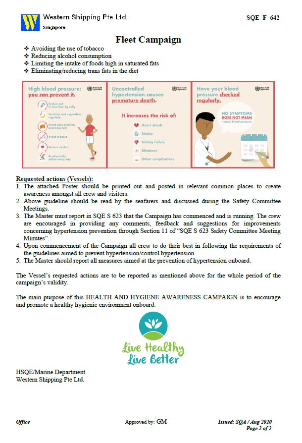 Western Shipping shall continue to commit to promoting the highest safety, security, environmental and crew welfare standards on-board our managed vessels.