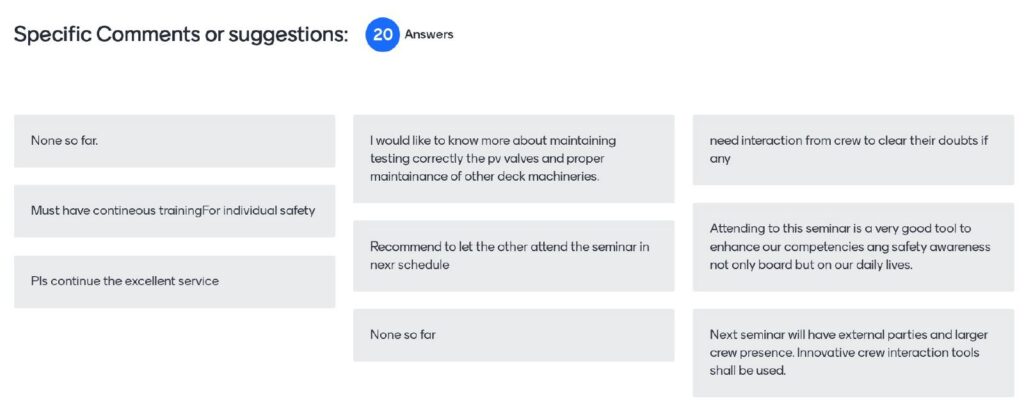 The seminar was organized for seafarers working on our tankers and LPGs. Total attendance is 19 seafarers.
