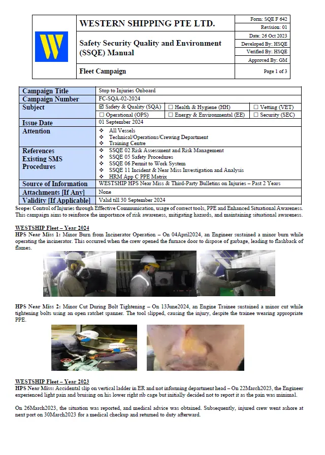 SQE F 642 Fleet Campaign – FC-SQA-02-2024 Stop to Injuries Onboard